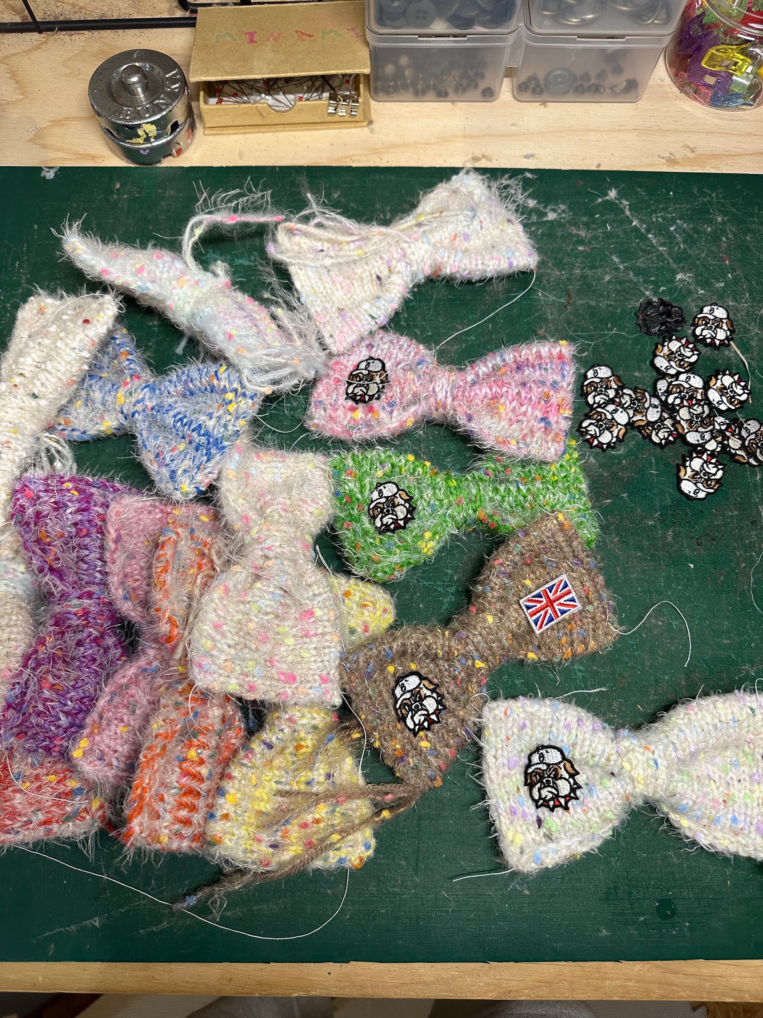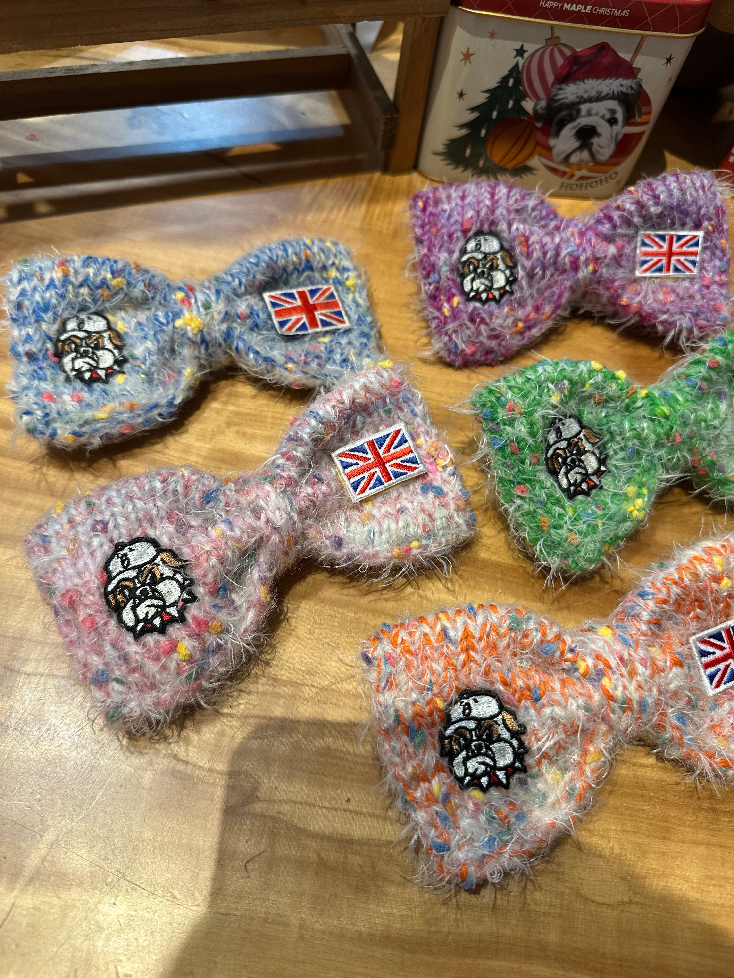 世界で1つだけbullbulldayオリジナル手編み蝶ネクタイ!hand knit bow tie!