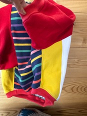 ※商品によって生地の伸縮性が異なるため、多少サイズにずれが生じることがございます。また、原材料に古着を使用しているため、元々の汚れやよれがあるものもございます。ご了承ください。