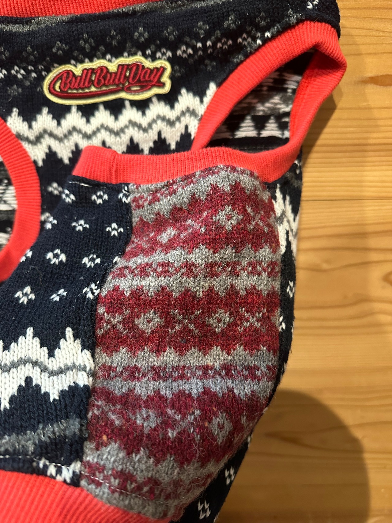胸にbullbulldayオリジナルロゴワッペン、右背中にワンポイントブルワッペン
